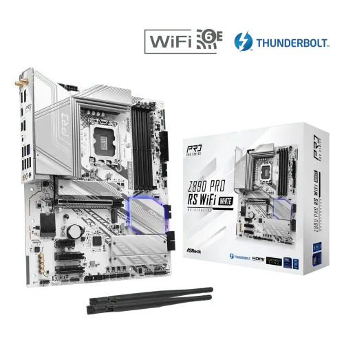 Model: Z890 Pro RS WiFi White Supported CPU: Intel Core Ultra Processors (Series 2) (LGA1851RL-ILM) Supported RAM: 4x DDR5, Max...