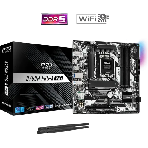 Model: B760M Pro-A WiFi Supported CPU: 14th, 13th & 12th Gen Intel Core Processors (LGA1700) Supported RAM: 4x DDR5, Max 256...
